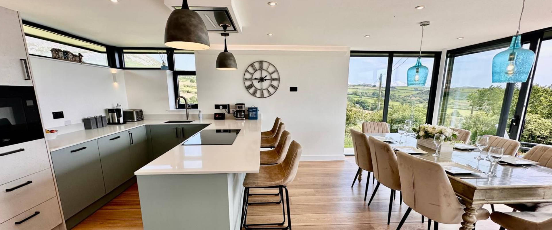 Spacious kitchen extension with granite worktops, two slide and hide ovens, breakfast bar and underfloor heating