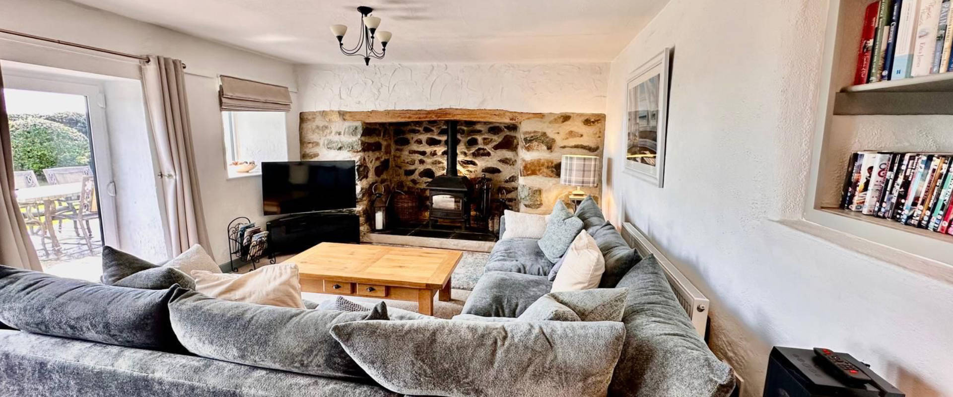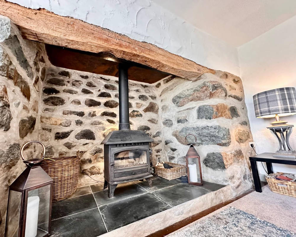 Cosy inglenook fireplace + log burner & large smart TV with Bluetooth speaker